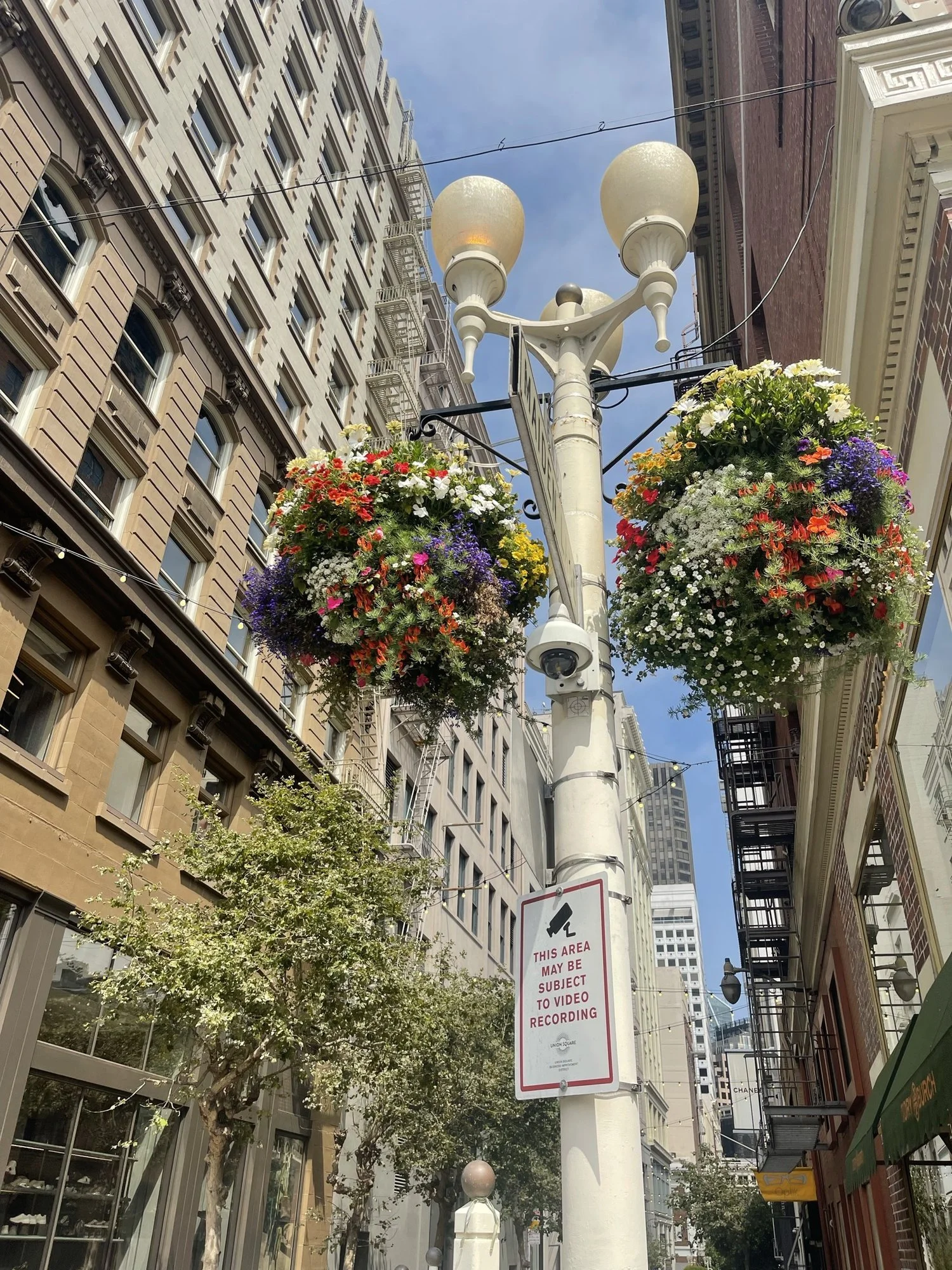 Maiden Lane is a backstreet connection between Stockton Street and Grant Avenue, lined on both sides with high-end retail and cafes. It is closed to vehicular traffic during the day by unique white gates with light posts. The Foundation installed and maintained the flower baskets at Maiden Lane. For the holiday season they were replaced with poinsettias and festive greenery.